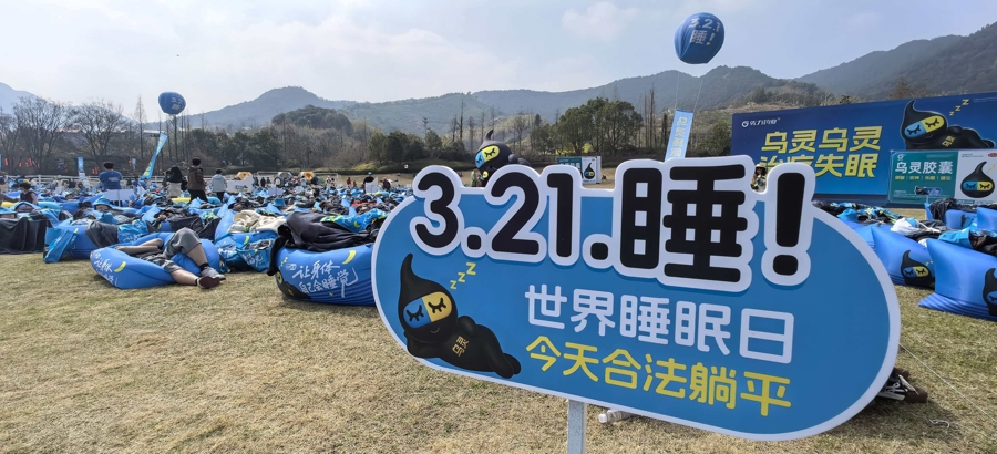 “世界睡眠日,今天合法躺平”“睡眠好,啥都好!”“睡个好觉,比什么都香”......3月21日,世界睡眠日。当天下午,位于德清县莫干山郡安里度假酒店的草坪上,德清县首届莫干山乌灵睡眠王挑战赛在此拉开帷幕。千名参赛者放下手机,佩戴眼罩与耳塞,在户外草坪上安然入眠,呼吁公众关注睡眠健康,远离慢性疾病。