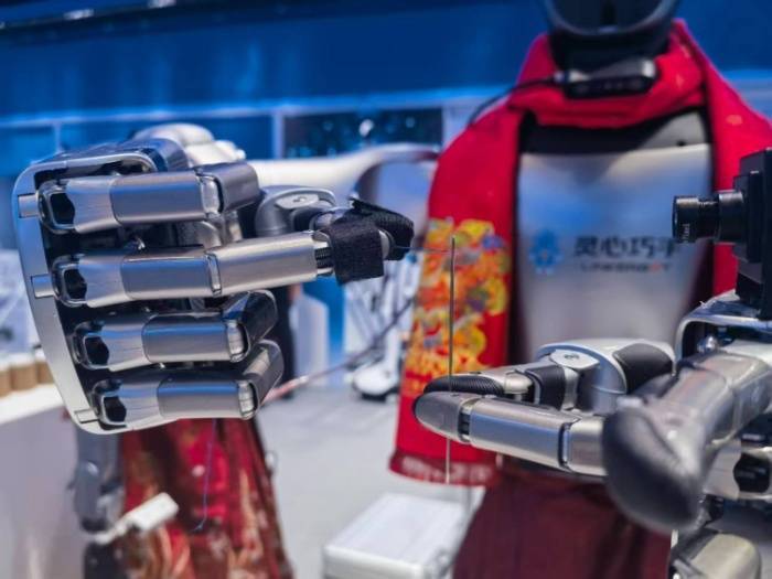 r在2026中关村论坛年会展示区,灵心巧手公司研制的灵巧手L20吸引许多观众驻足。它左手拿针,右手拿线,精准快速地完成“穿针引线”动作。据现场工作人员介绍,这款灵巧手拥有21个自由度,它指尖集成的多模态传感器,能“摸出”工件的纹理与硬度。