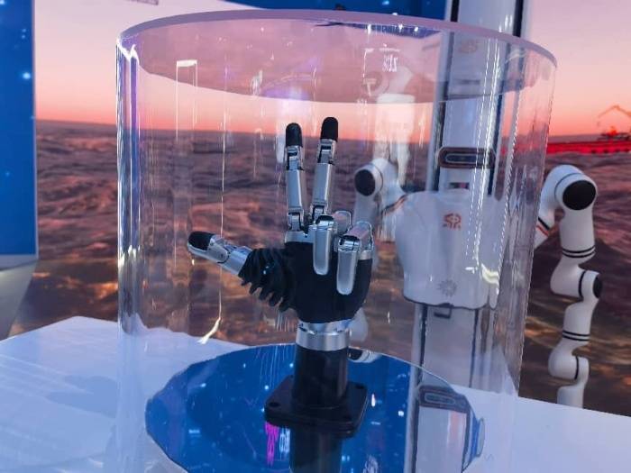 r在另一机器人灵巧手展台,一组灵巧手吸引众多观众驻足围观。这组由月泉仿生公司研发的灵巧手能成功完成全部33类类人灵巧操控,成功率达96%,接近人手水平,力量上也可满足高负载抓握与操控需求;速度上,指闭合仅需0.2秒,反应速度接近人手水平,可大幅提升操作效率。